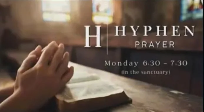 Hyphen prayer takes place every Monday evening from 6:30 pm to 7:30 pm
